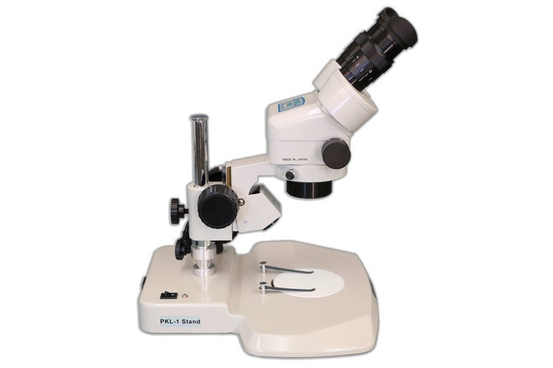 This Meiji EMZ-5 microscope features a total magnification range of 7x - 45x. This microscope package includes the Meiji EMZ-5 body, pair of 10x W.F. eyepieces, and wide LED incident illuminated pole stand. The stand includes a reversible black / white stage plate and two stage clips. This microscope is available in both binocular and trinocular versions.