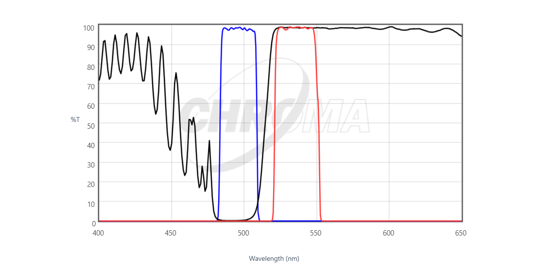The Chroma 49303 ET - Green#1 FISH filter set from Chroma Technology is designed for use with commercially available Green#1 FISH probes and chromosome painting techniques.