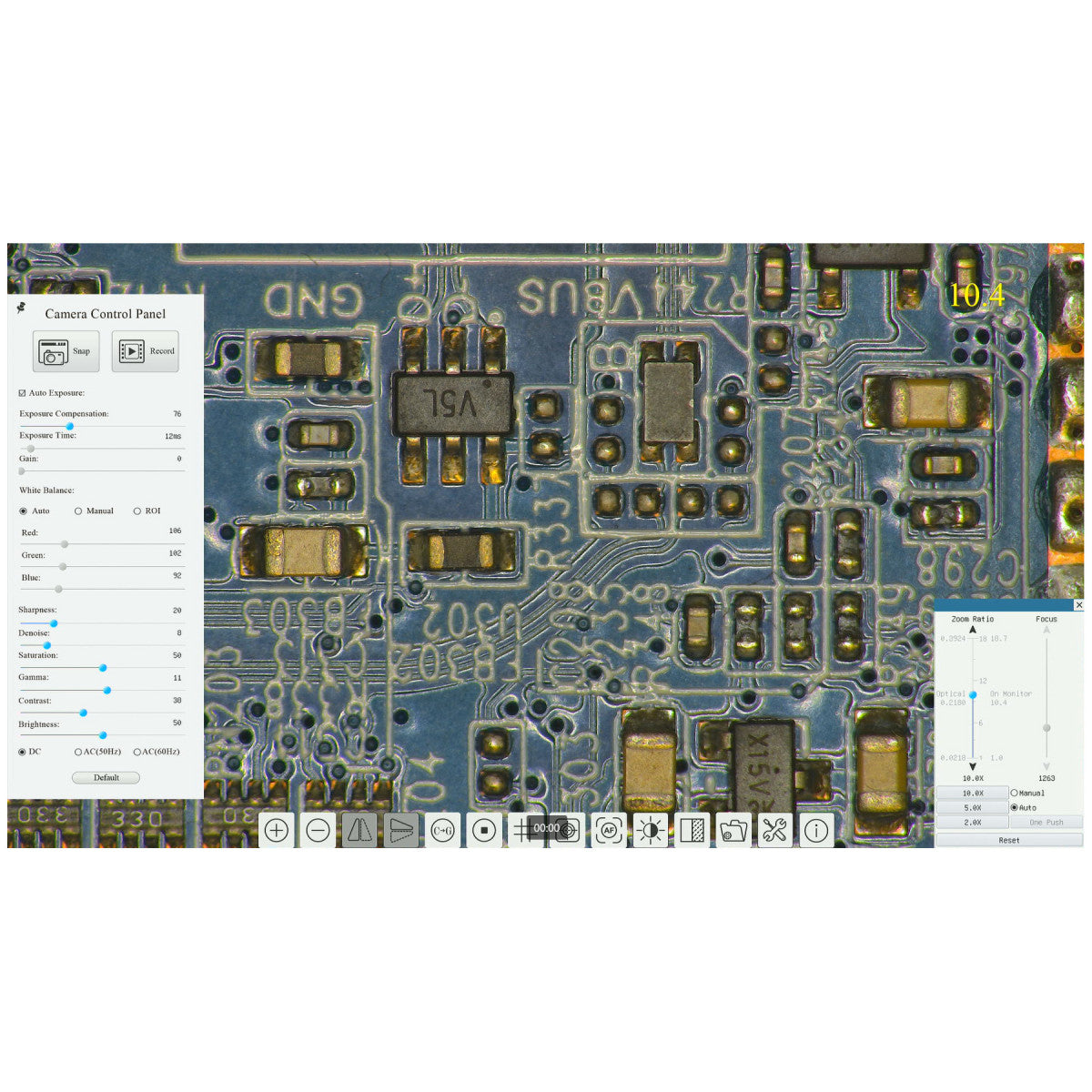 | Camera Control Menu | Includes: Exposure, Gain, White Balance, Sharpness, Denoise, Saturation, Gamma, Contrast, Brightness |